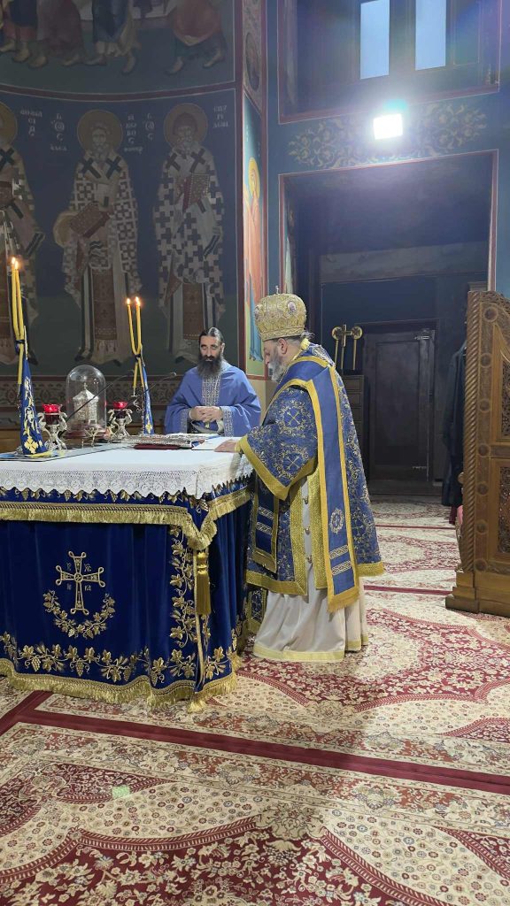 Το απόγευμα της ίδιας ημέρας, ο Σεβασμιώτατος Μητροπολίτης μετέβη εκ νέου στον ως άνω Ιερό Προσκυνηματικό Ναό, όπου χοροστάτησε στην ακολουθία του Εσπερινού.
