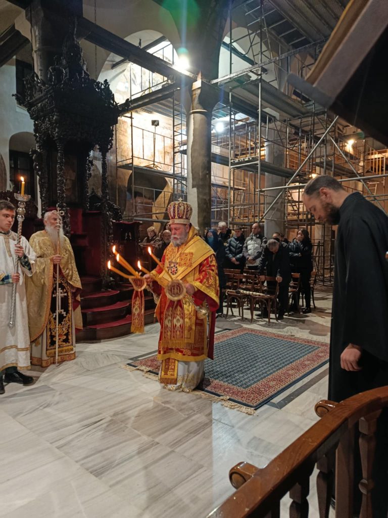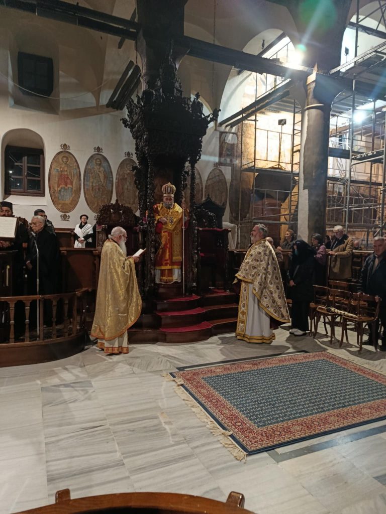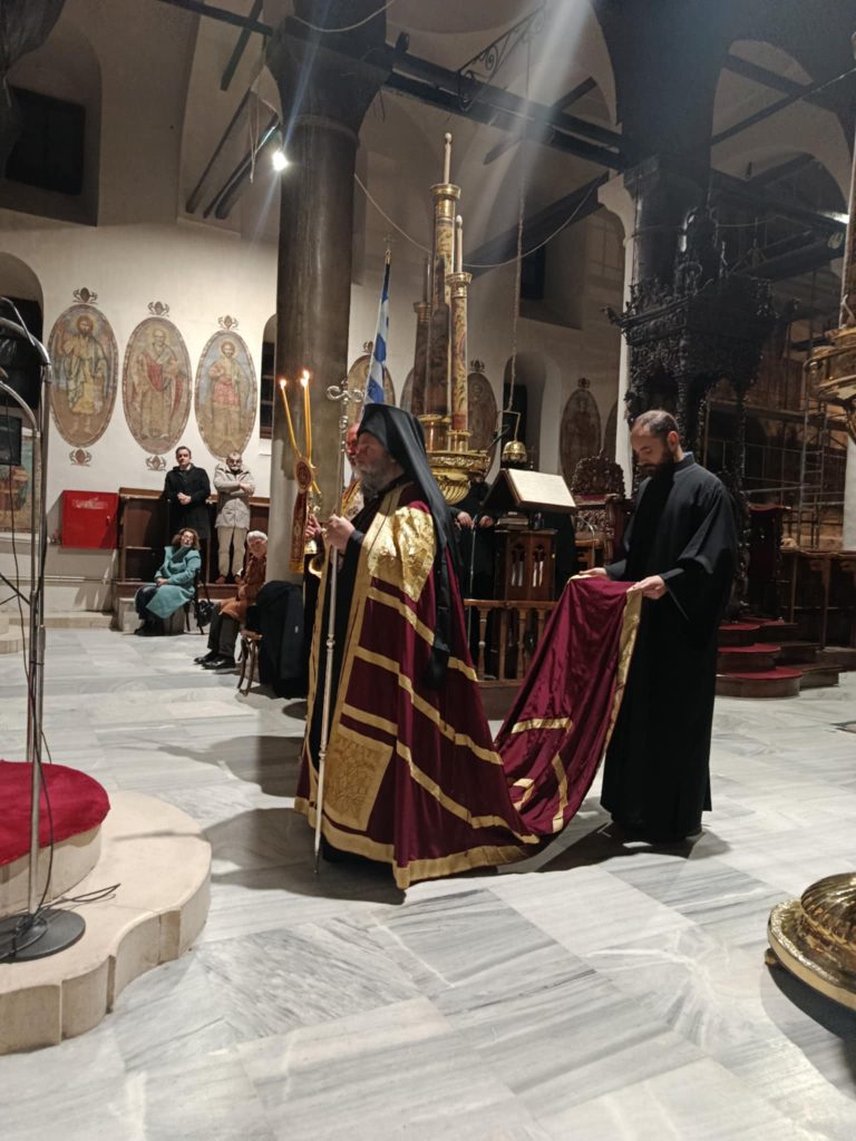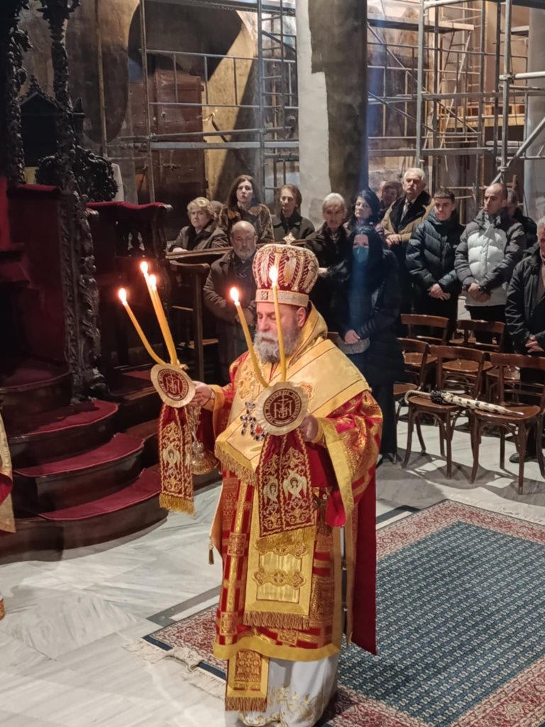 Ο ιερός ναός ήταν κατάμεστος από πλήθος πιστών, οι οποίοι προσήλθαν με ευλάβεια και κατάνυξη για να τιμήσουν το μέγα γεγονός της Ενανθρωπήσεως του Θεού Λόγου, συμμετέχοντας προσευχητικά στη χαρά και τη σωτηριολογική σημασία της εορτής των Χριστουγέννων.