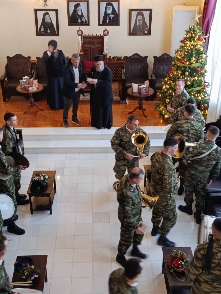Σήμερα, παραμονή Πρωτοχρονιάς, Τετάρτη 31 Δεκεμβρίου 2025, ο Σεβασμιώτατος Μητροπολίτης Ιωαννίνων κ. Μάξιμος δέχθηκε στο Επισκοπείο της Ιεράς Μητροπόλεως Ιωαννίνων τη Μπάντα της 8ης Μηχανοποιημένης Ταξιαρχίας Ηπείρου.