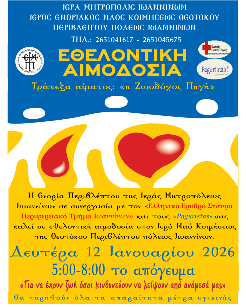 ΑΙΜΟΔΟΣΙΑ 12-01-2026 ΑΝΑΚΟΙΝΩΣΗ