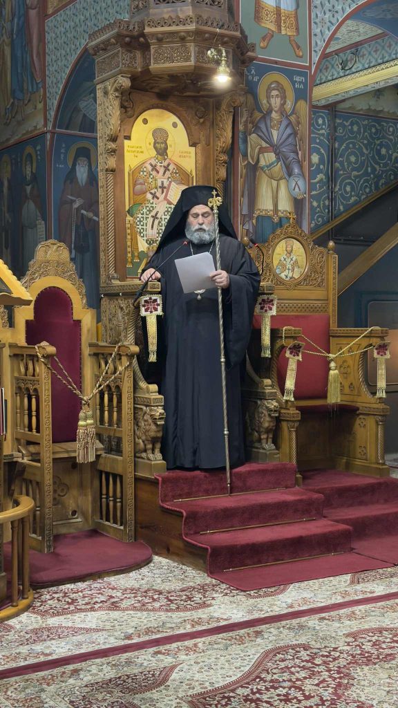 Μετά το πέρας της Θείας Λειτουργίας, ο Σεβασμιώτατος άκουσε με ιδιαίτερη χαρά τα πρωτοχρονιάτικα κάλαντα από νέα παιδιά, τα οποία προσήλθαν με ευλάβεια και εορταστική διάθεση, ανταλλάσσοντας μαζί του θερμές ευχές για το νέο έτος. Ο Σεβασμιώτατος τα ευχαρίστησε πατρικά και τους ευχήθηκε υγεία, πρόοδο και κάθε ευλογία από τον Θεό.