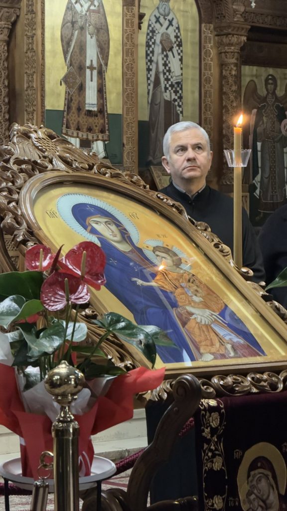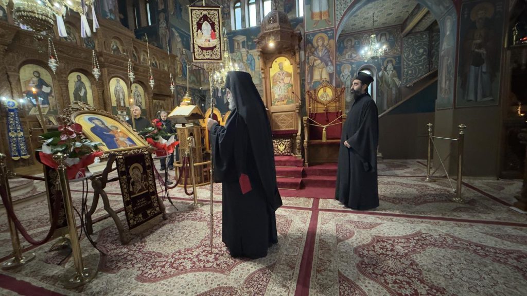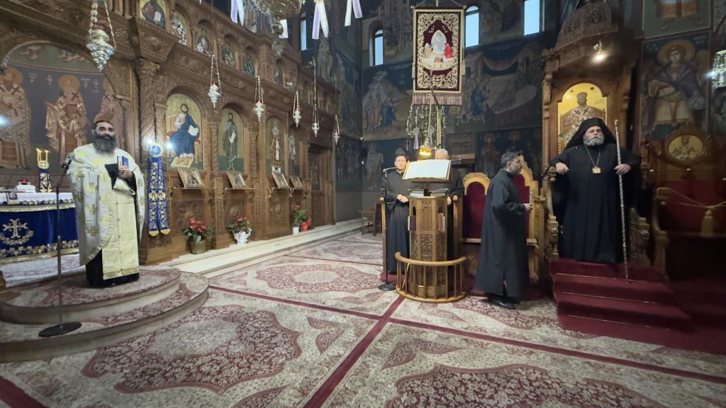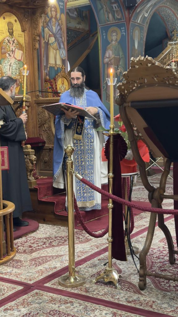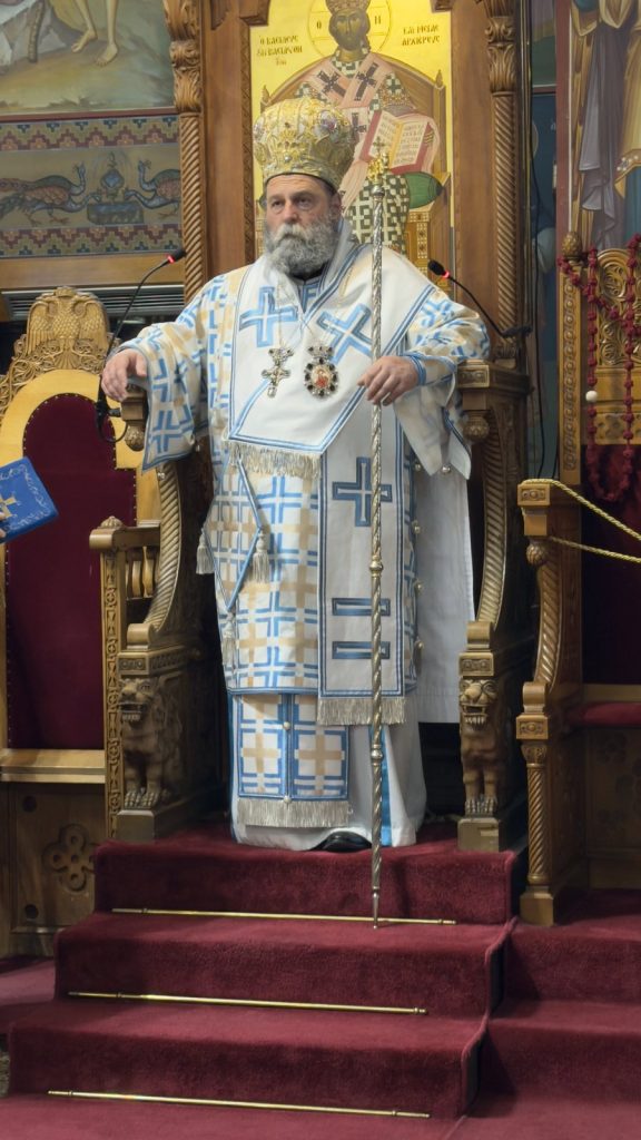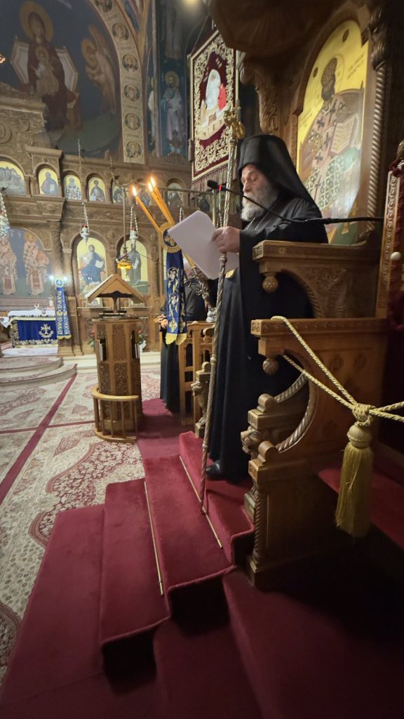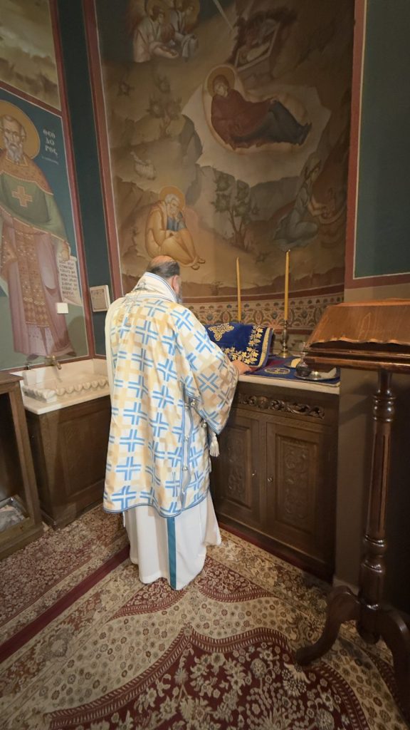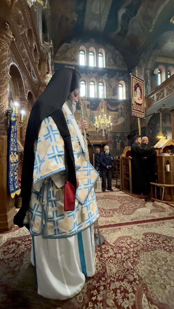 Το εσπέρας της ιδίας ημέρας ο Σεβασμιώτατος χοροστάτησε στην Ακολουθία του Εσπερινού στον ως άνω Ιερό Προσκυνηματικό Ναό.