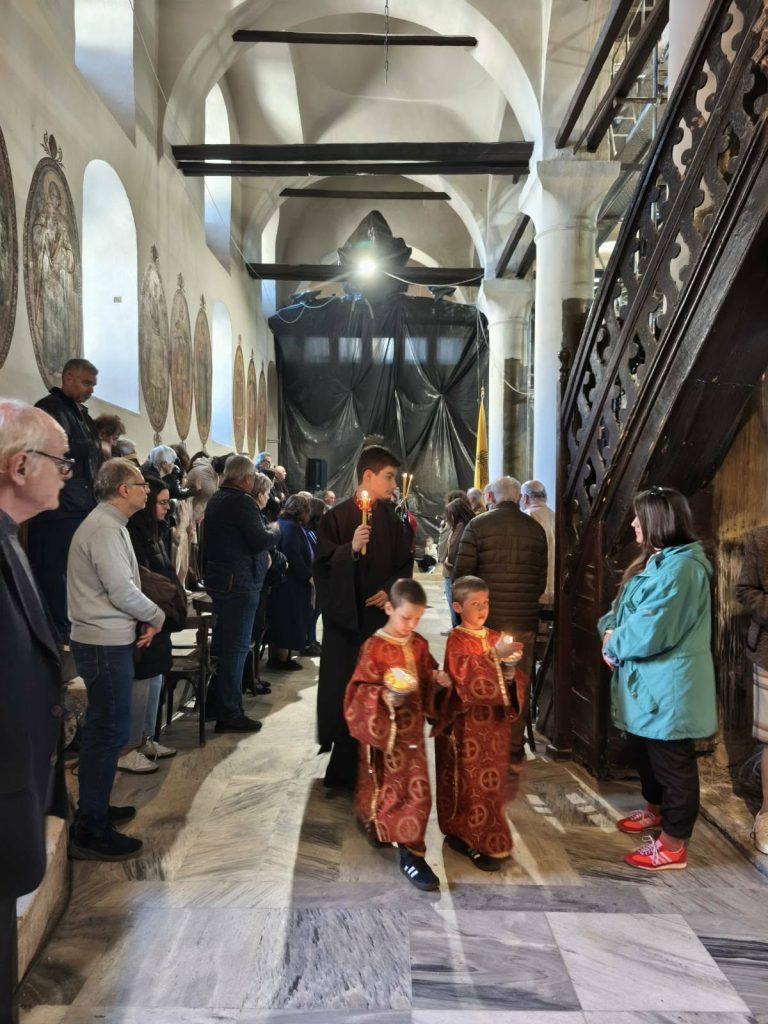 Το πρωί της Μεγάλης Παρασκευής, ο Σεβασμιώτατος Μητροπολίτης Ιωαννίνων κ.κ. Μάξιμος μετέβη στον ως άνω Ιερό Ναό, όπου χοροστάτησε της Ακολουθίας των Μεγάλων Ωρών και του Εσπερινού της Αποκαθηλώσεως, κατά τον οποίο κορυφώνεται το Θείο Δράμα.